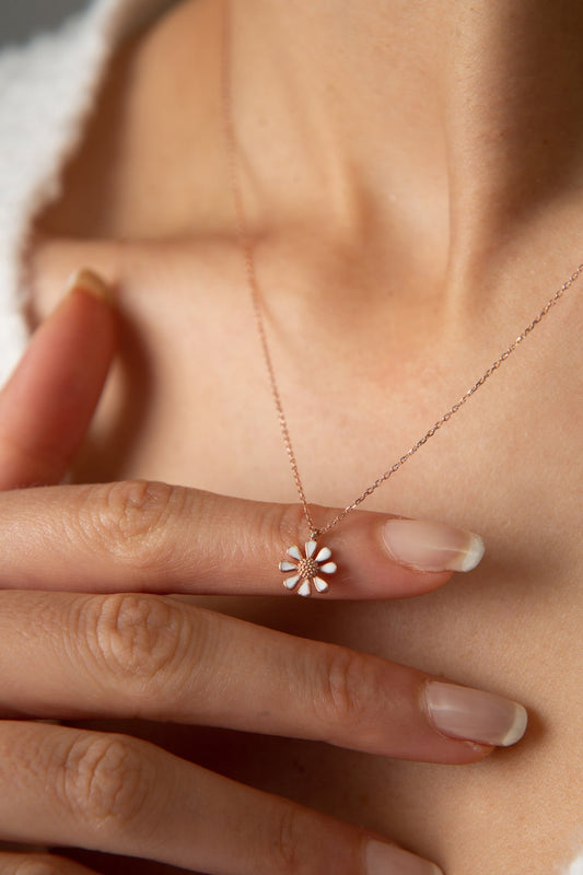 Women's Rose Plated Enameled Daisy Model 925 Sterling Silver Necklace
