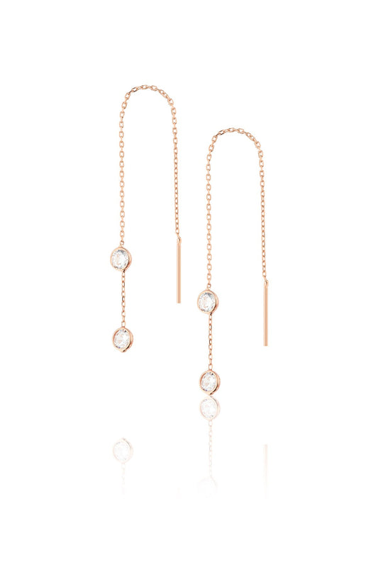 Women's Row Stone Rose Plated 925 Sterling Silver Earrings