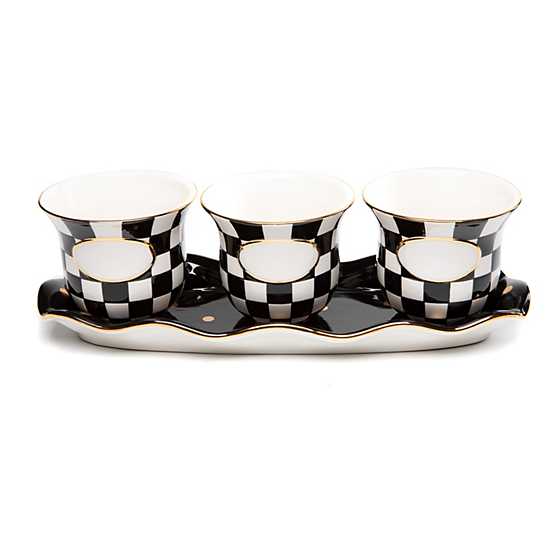 The hand-painted ceramic Courtly Check® Herb Garden Set includes three checked flower pots displayed on a tray trimmed with dots and gold lustre. You can label what is growing in each pot with an erasable marker, making this both pretty and practical.