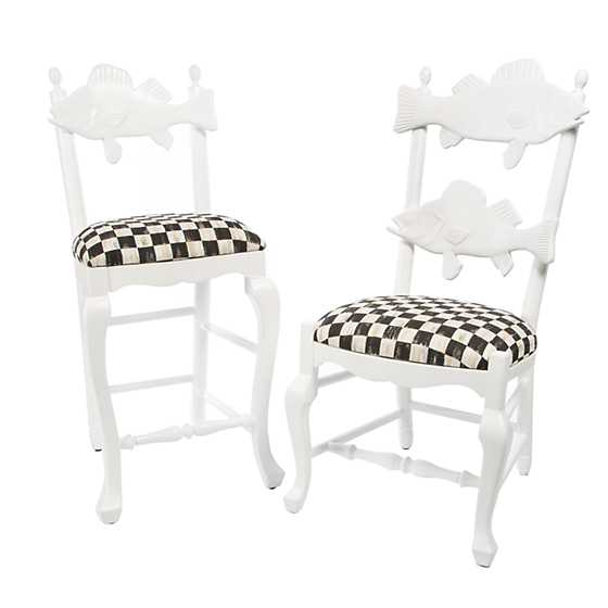 Add a splash of piscine playfulness to your home with our Courtly Check® Outdoor Fish Chair. Featuring an upholstered cushion of our Courtly Check® pattern, it has a durable steel frame with crisp, white polyurethane coating. Durable enough for outdoors but equally fashionable and functional indoors, too.