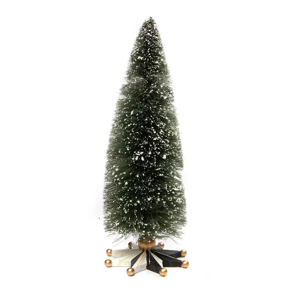 Add the festive and fresh Medium Farmhouse Bottle Brush Tree to your holiday tabletops. It’s presented on a dimensional Courtly star base, accented with golden balls on the points. Display it with the Small Farmhouse Bottle Brush Tree and the Large Farmhouse Bottle Brush Tree to add dimensional delight to your holiday displays