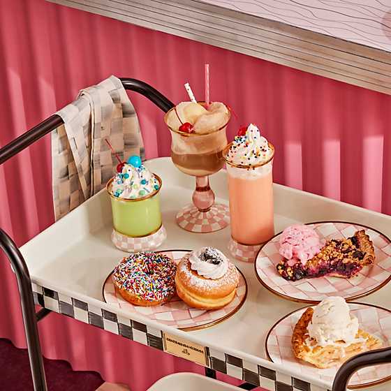 Make any occasion more special by setting the table with our set of two hand-painted Rosy Check Highball Glasses. These mouth-blown glasses, featuring a base of Rosy Check, are trimmed with gold lustre.