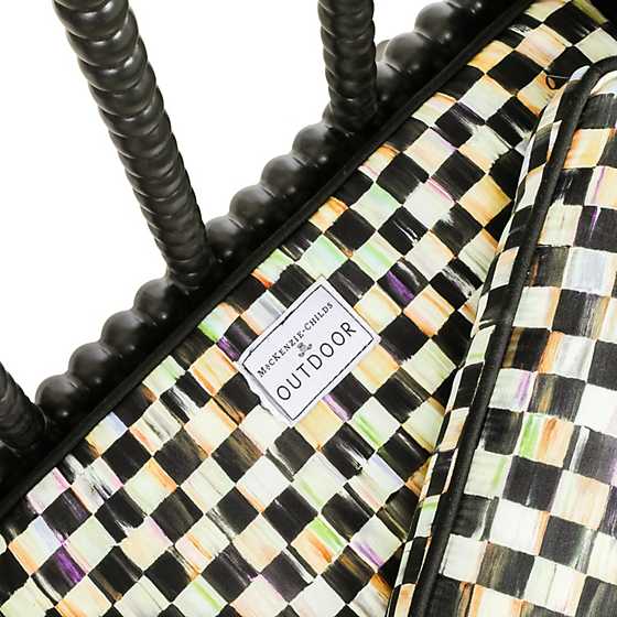 The Spindle Check Outdoor Loveseat is a modern take on parlor style, now for the patio, in weather-ready materials and our most iconic MacKenzie-Childs pattern. We start with chic black spindle frames and dress them up with outdoor cushions in eye-catching Courtly Check. Equally elegant on the lakeside deck of a beloved family camp as in an urban townhouse sunroom, this suite brings the indoors out with panache.