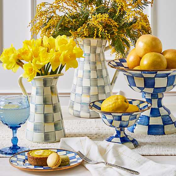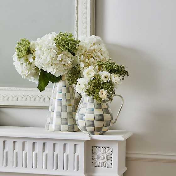 For lemonade, iced tea—or better yet, a blend of both—nothing beats our Large Sterling Check Practical Pitcher. And when it isn’t being used for serving beverages, it makes a wonderful vase with the color of the blooms playing off the hand-painted checks in a range of grey hues woven with jewel tones.
